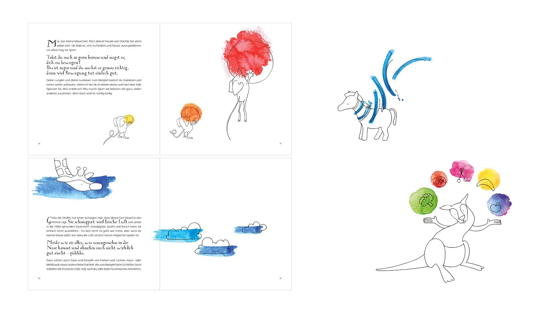 Genau wie die aquarellierten Strichzeichnungen von Carmen Fuchs, die der Ernsthaftigkeit des Themas mit unaufdringlichen, unbeschwerten und leuchtenden Bildern einen perfekten Rahmen schafft. Selbst der typografische Wechsel wirkt sich bei der Textgestaltung wohltuend aus."